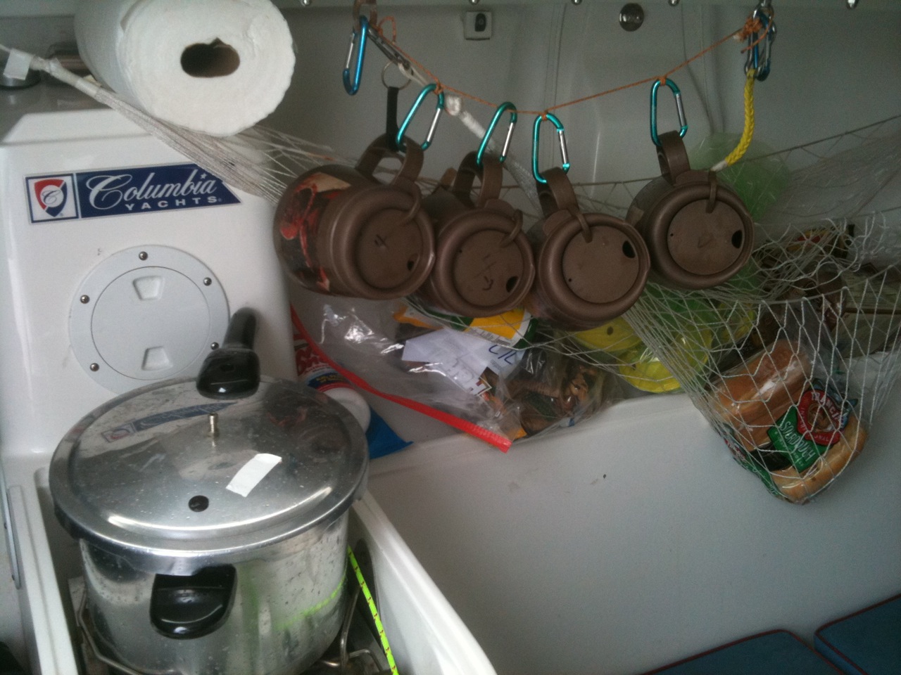 Skillsaw continues to amaze us with his culinary skills. Last night he made us grog with fresh lime juice. Wow! But today he caught the stove on fire trying to boil water. Not a real emergency but enough that they grabbed the only dry towel on board (Skippers), dowsed it with water and set it on the stove-where it promptly began to smoke Luckily, Skillsaw not only has excellent culinary skills, he is also a volunteer firefighter. After determining the towel was properly cooked to order (green on one side, charred on the other), he grabbed a CO2 fire extinguisher, aimed it at the base of the alcohol stove with a mighty "Pffffffftttt" put out the fire, promptly causing the cabin to be evacuated.